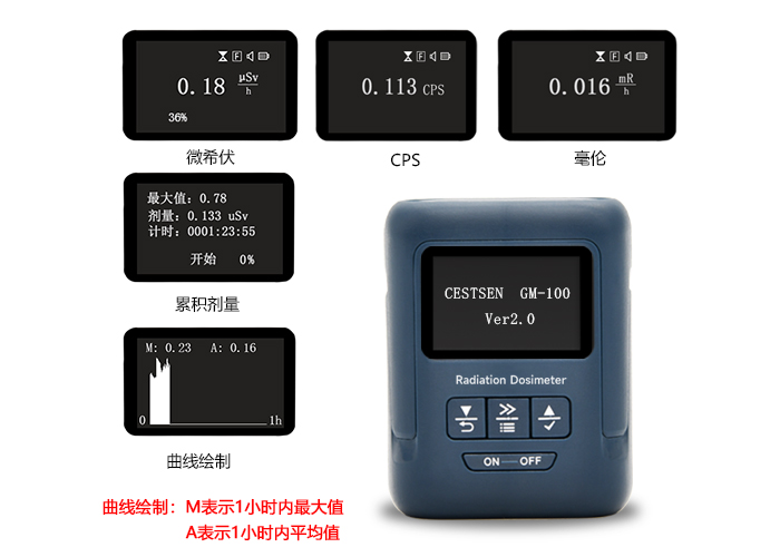 uSv/h,mSv/h,mR/h, CPS,mSv